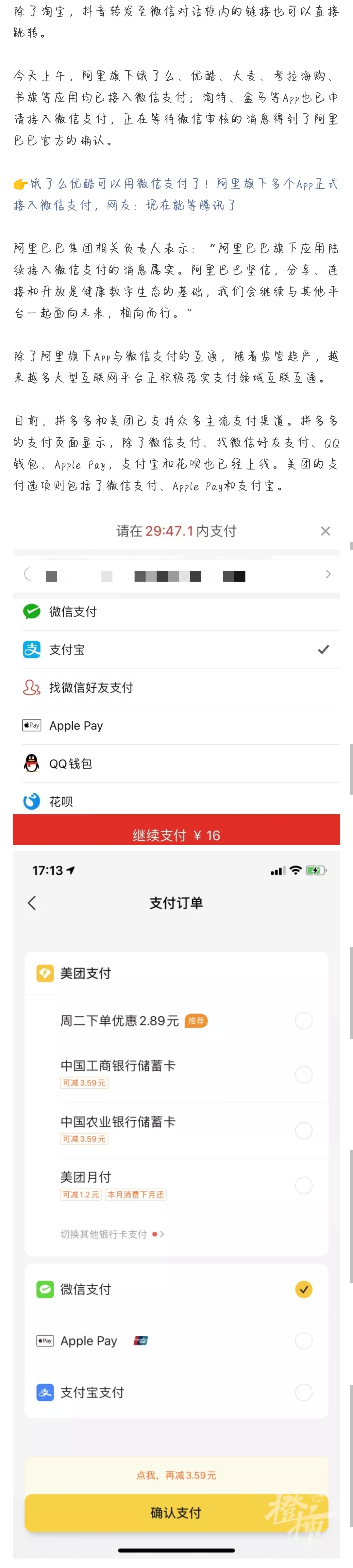 微信可以打开淘宝链接了! 拼多多和美团接入主流支付渠道