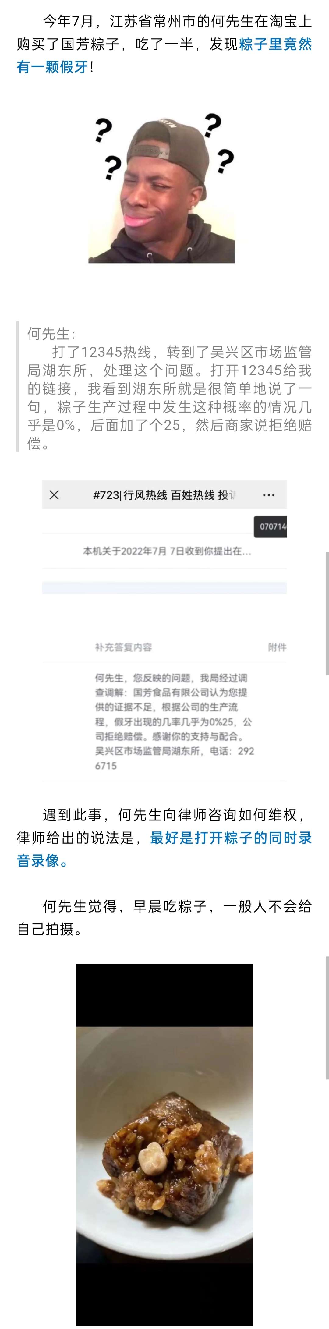 网购品牌粽子,竟然吃出假牙?
