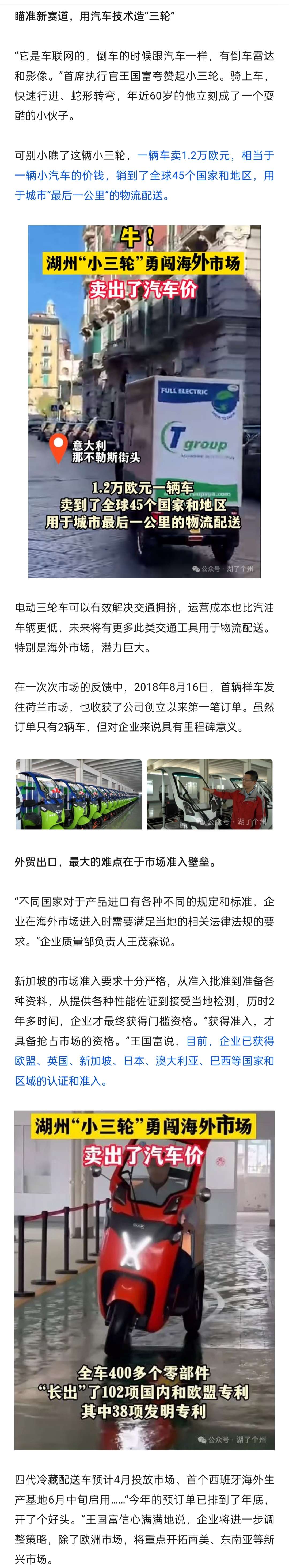 卖出汽车价!湖州“小三轮”爆火海外市场