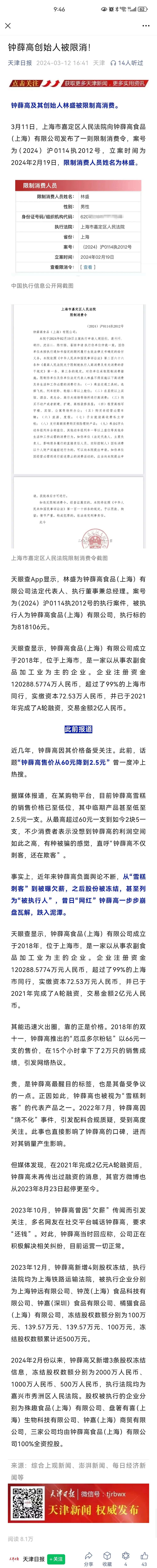 看他起高楼,看他楼塌了之钟薛高创始人被限高消费