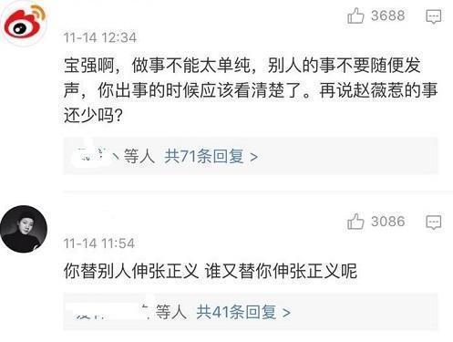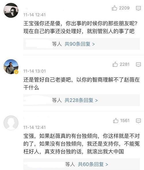 王宝强的家事还没有处理好,或是因为心肠热情,不满好人被冤枉,于是转发了赵薇的微博,虽没有发表言论,但也是暗指支持赵薇。这可惹烦了网友,网友留言: