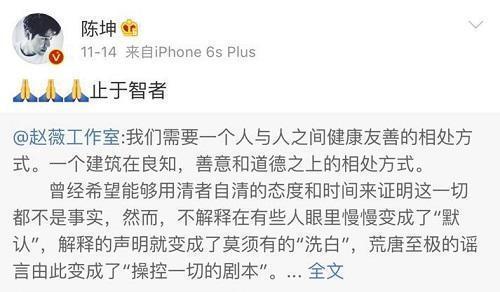 与此同时,陈坤的微博也转发了赵薇的动态,迎来的也是反对的声音。