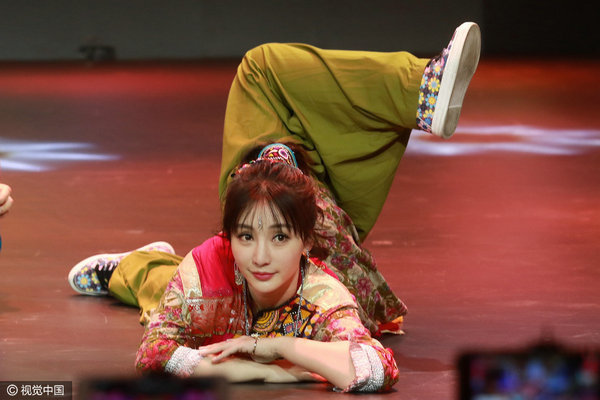 柳岩展现柔韧度 柳岩作为“吴静”的扮演者,也是四大主演中唯一的女性,先是展示了极具异域风情的戏服造型,带着三位“兄弟”大跳“天竺版”神曲PPAP,后以一身优雅知性的蕾丝连衣裙亮相,举起超大号印度飞饼连拍卖萌,更是不顾形象地就地和小岳岳展开健身PK,场面十分欢乐。