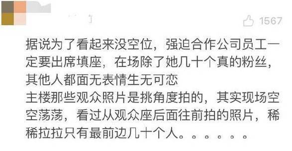 但据不少的现场观众透露,其实并没有官方透露的那么多粉丝。反而是有不少的网友爆料当晚观众其实都是雇来的,或者合作公司强制要求员工去观看。