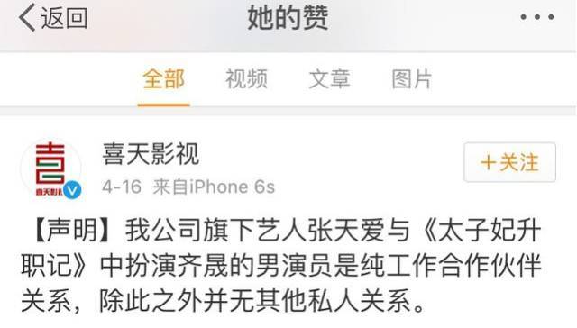 据说,在生日会现场,张天爱还甜蜜的提出了盛一伦,并称一伦在内蒙古拍戏无法赶来现场。看到这里想说,难道天爱你已经忘了,你早前才刚澄清过,与《太子妃升职记》齐晟的扮演者纯工作合作伙伴关系,除此之外并无其他私人关系了吗?